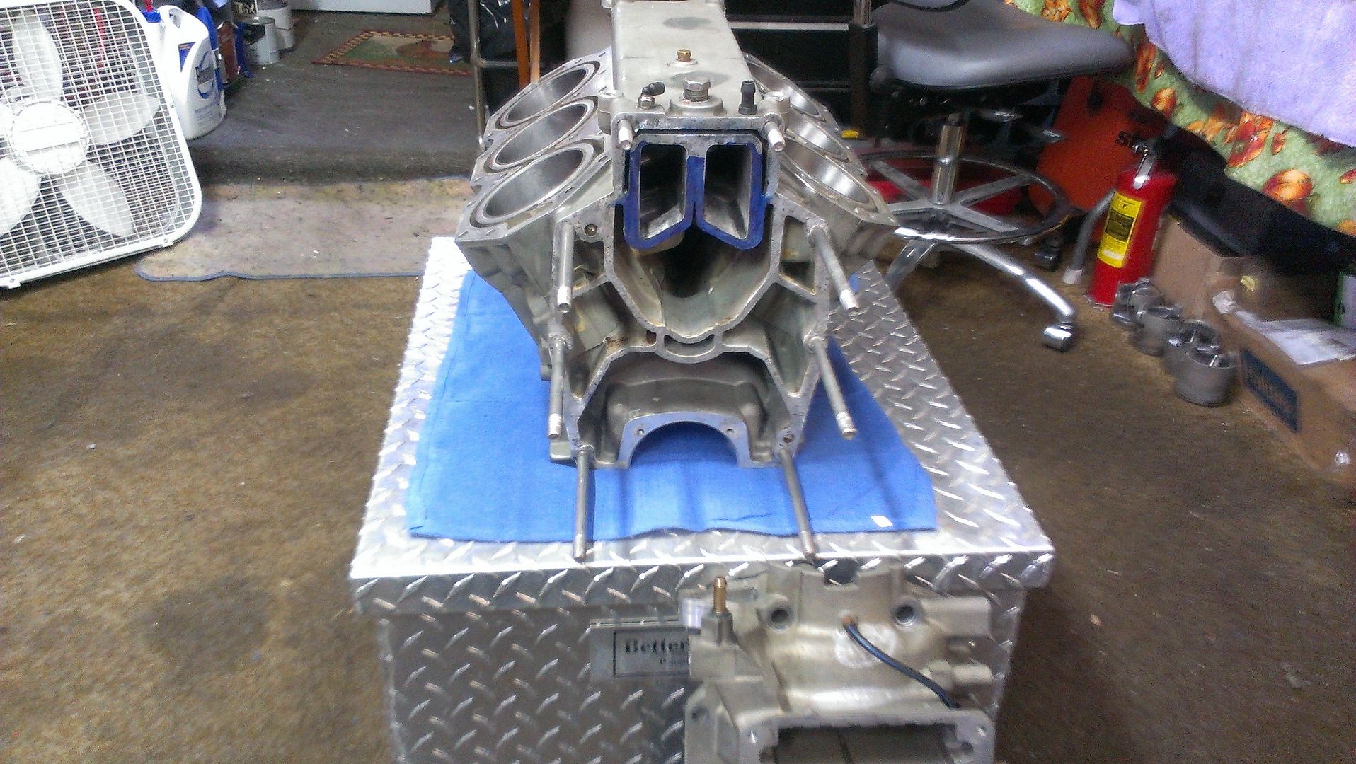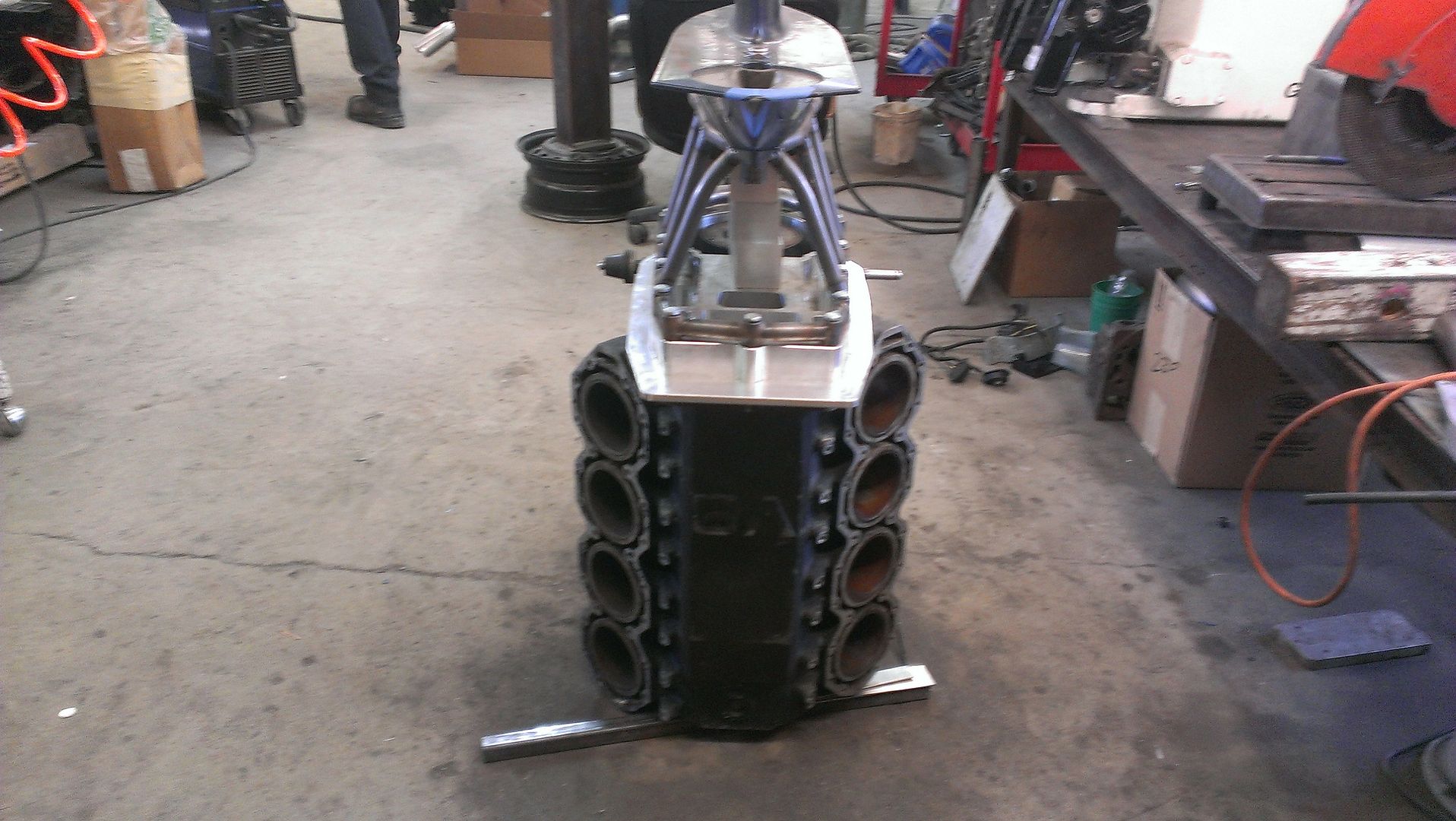 The reason I said the junk V-6 block sittin out back of Monty Racing was my favorite was because it was the one I use to jig up the mid on Ray Leach's current boat . Got it back the other day to start on another V-6 ...