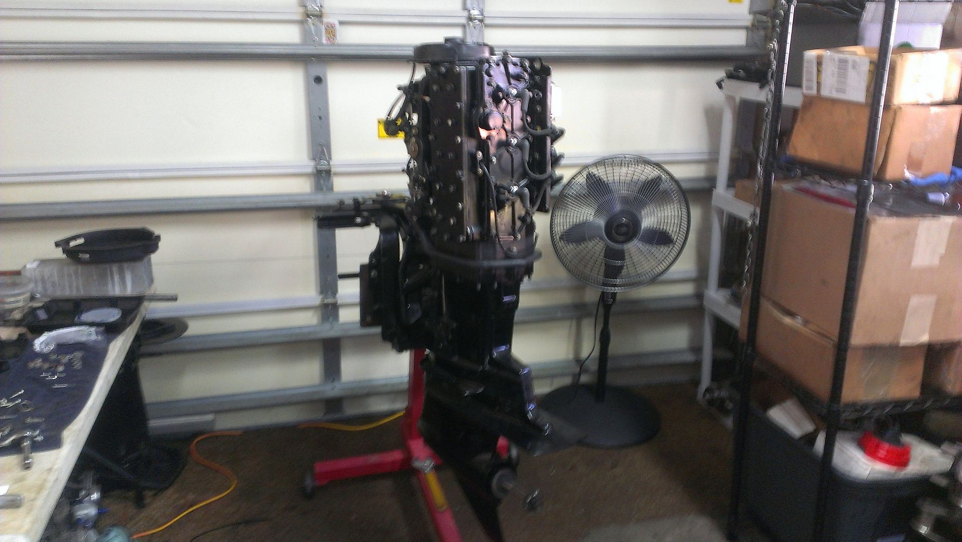 One is more than a powerhead . Bombproof tiller , rebuilt steering , plumbing , wiring , nuts and boltz ... now trying to fit a 10 lb cowling on a bad azz 5 lb mota .. then she's ready for Kory to put the pedal ... err ... run a tank or two thru it before stringin it out ...